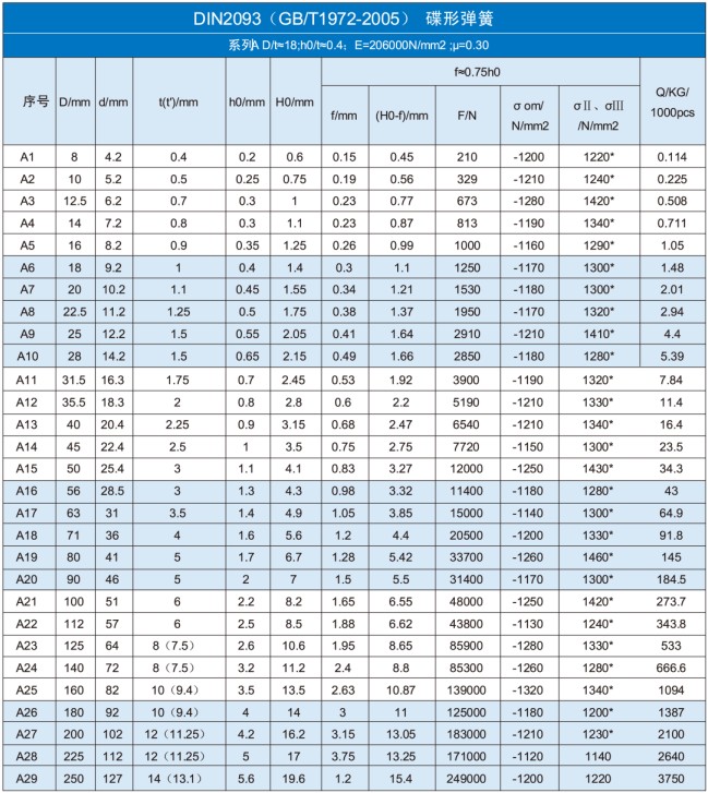 DIN2093標準碟簧